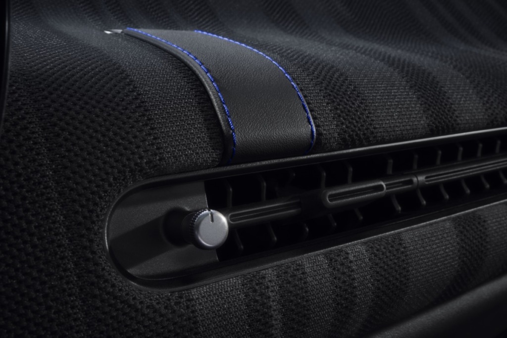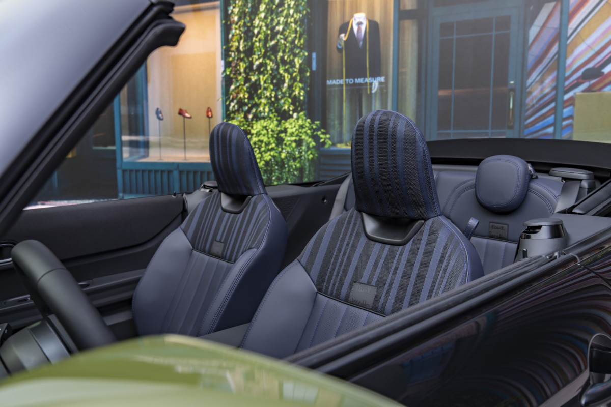 ダッシュボードとドア・パネルに採用されたニット素材はブラックで、ストライプ・パターンのポール・スミス・ファブリックがアクセントになっています。