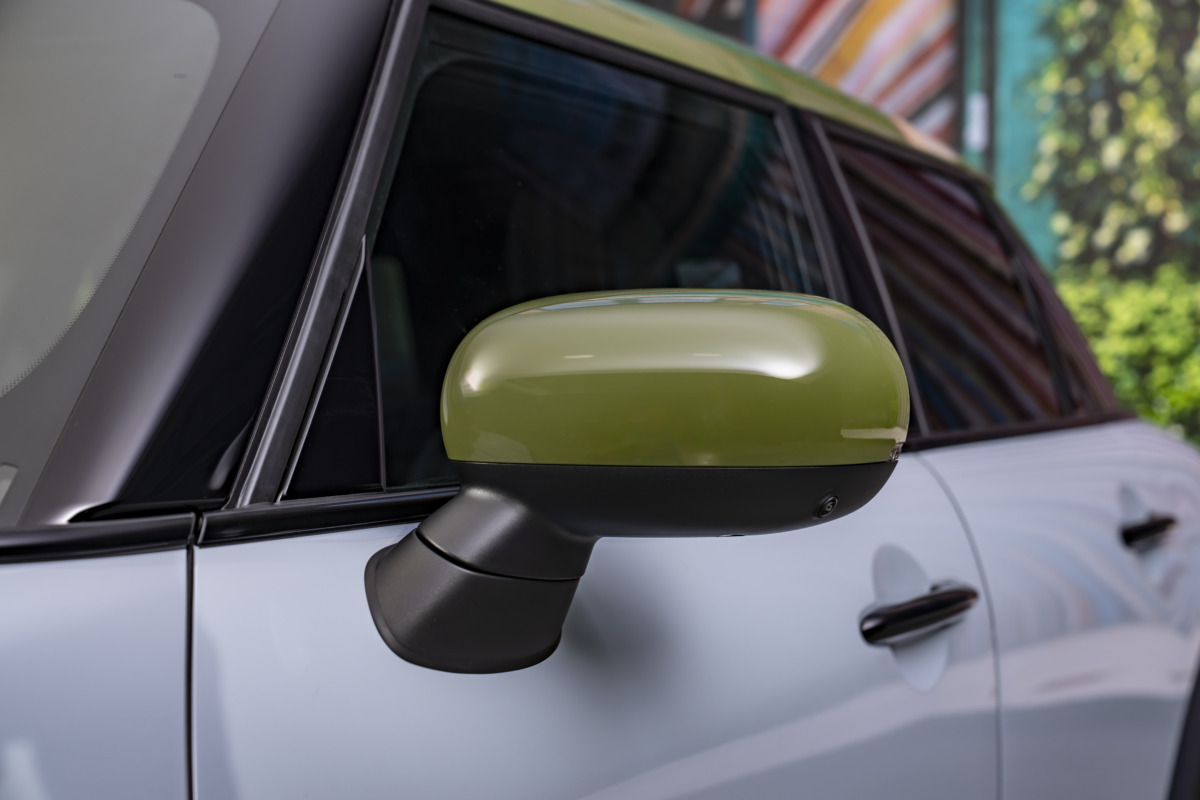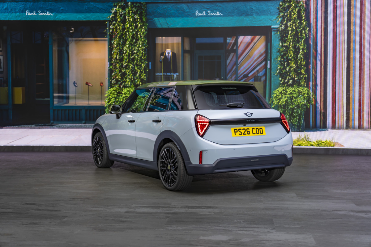 ルーフカラーに採用されている「ノッティンガム・グリーン」はポール・スミスの故郷の町へのオマージュとして特別に作られた色となります。「ノッティンガム・グリーン」はドア・ミラーとラジエーター・グリル・フレームにも用いられ、ポール・スミス・エディションのアクセントとなっています。